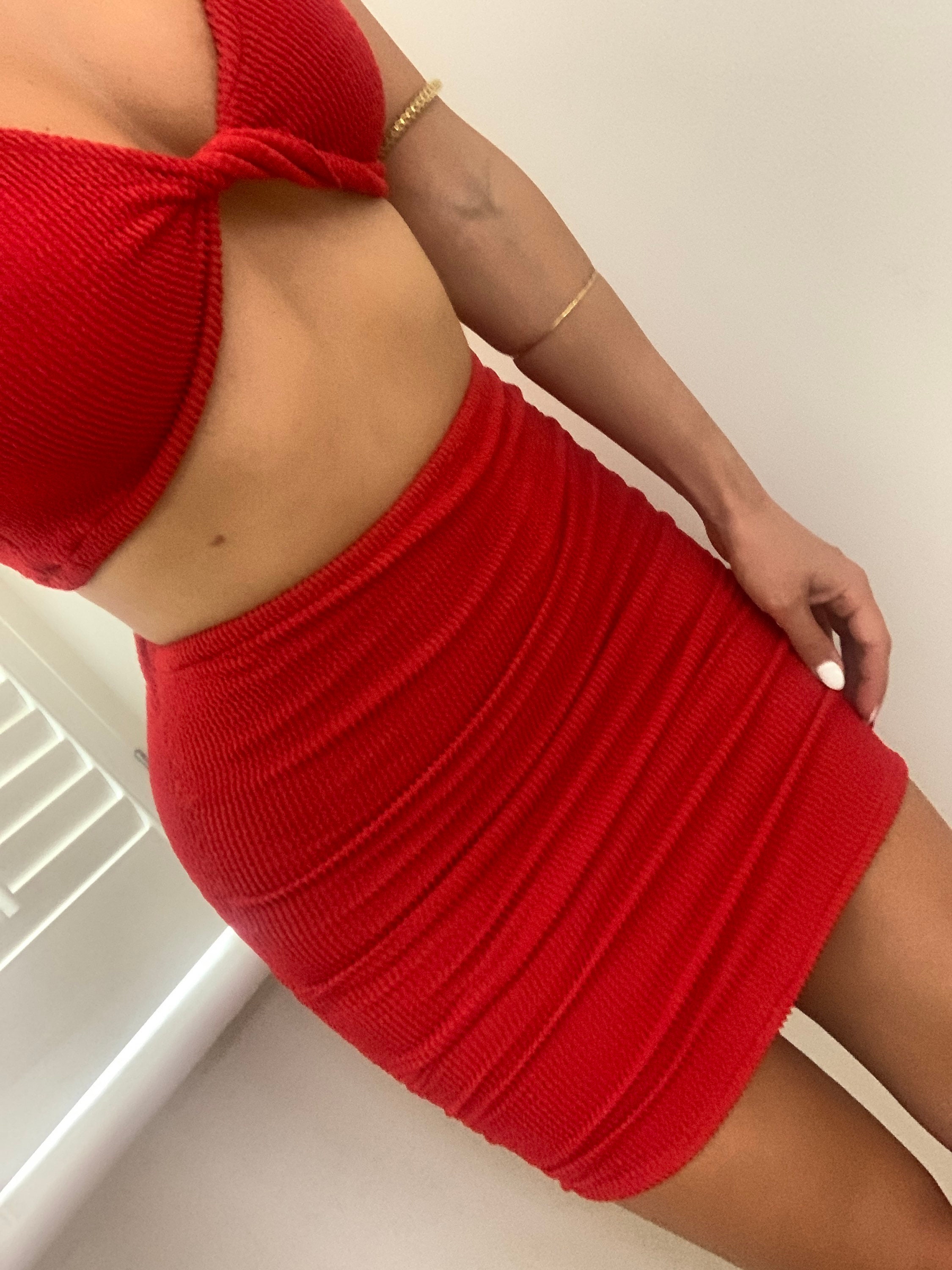 Ruched Crinkle Mini Skirt Ultra Body Hugging In Red Crinkle Etsy